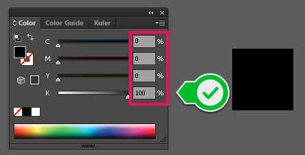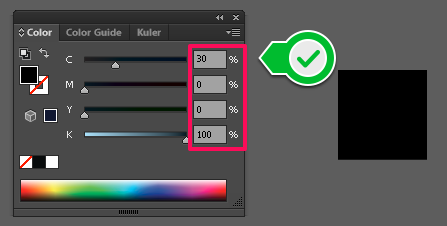- Use a composite black by setting Cyan (C) to 30% and Black (K) to 100%.